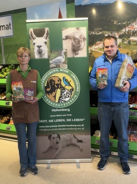 Um Lieferketten kurz zu halten und die heimische Wirtschaft zu unterstützen, haben wir einen Teil der Futterspende über die Firma ADEG - KASSES Hohenberg gekauft.
